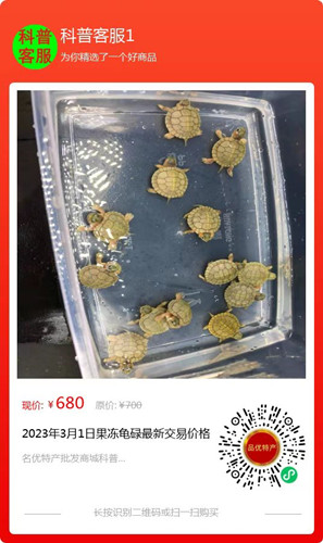 刚刚,平台收集到部分养殖场养殖户收购商电商反馈2022年的果冻龟碌(2022年出壳,30-100克)最新交易价格如下: